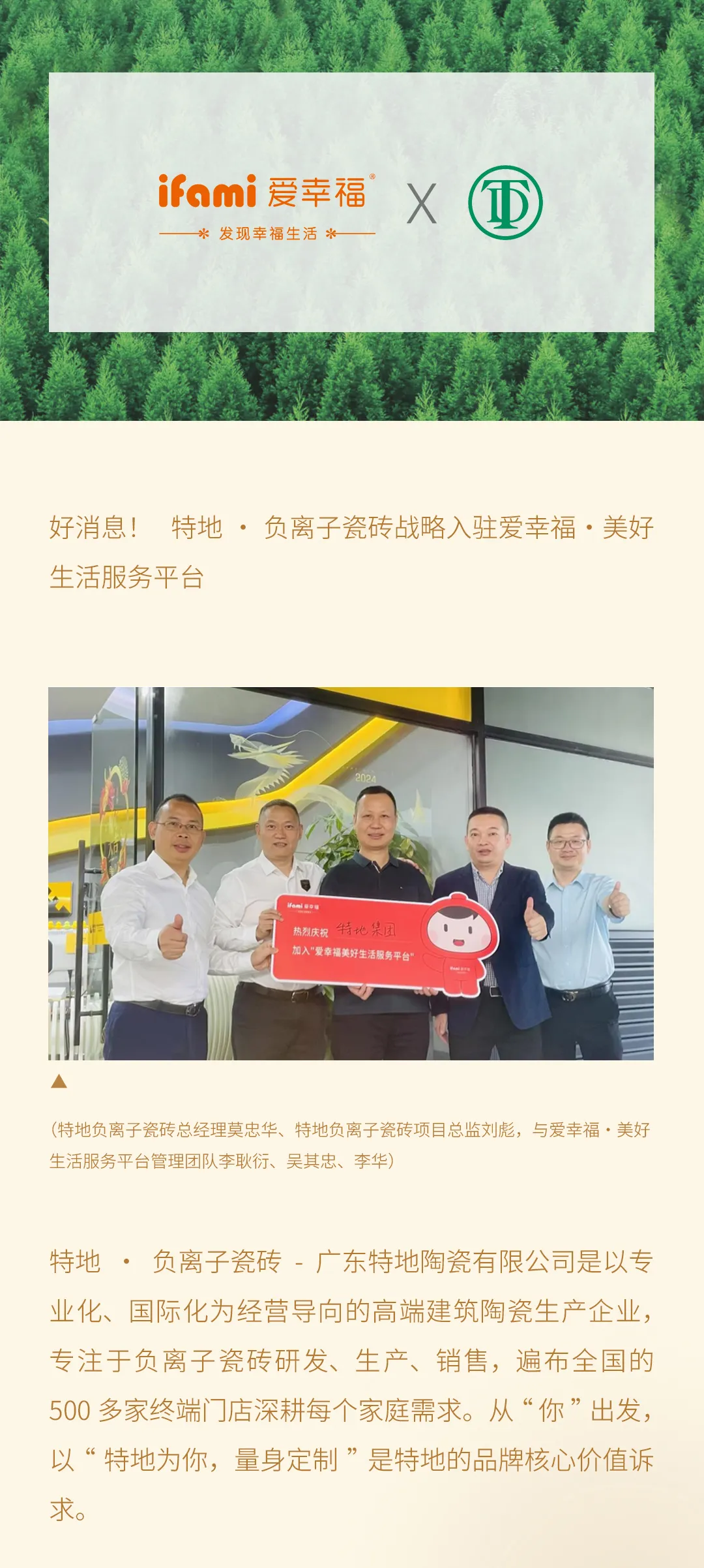 特地·负离子瓷砖战略入驻爱幸福·美好生活服务平台