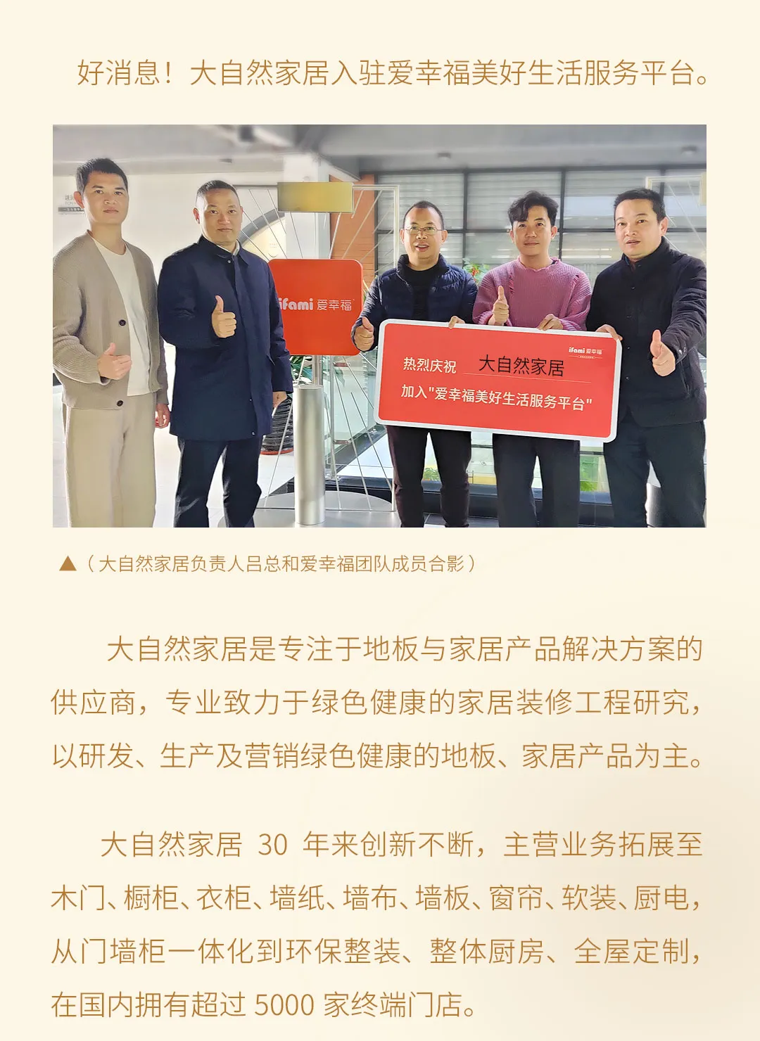 大自然家居入驻爱幸福·美好生活服务平台
