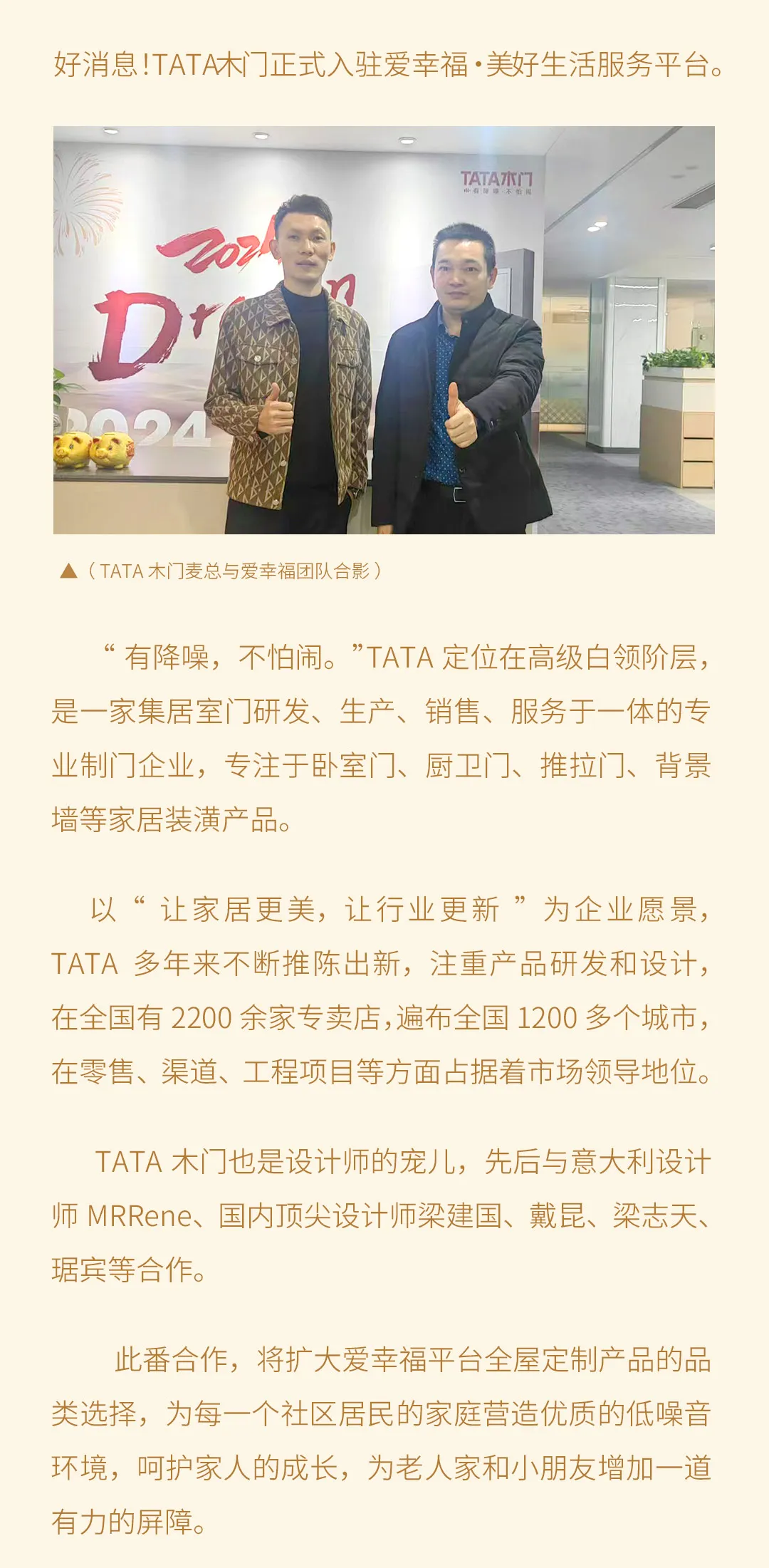 TATA木门正式入驻爱幸福·美好生活服务平台
