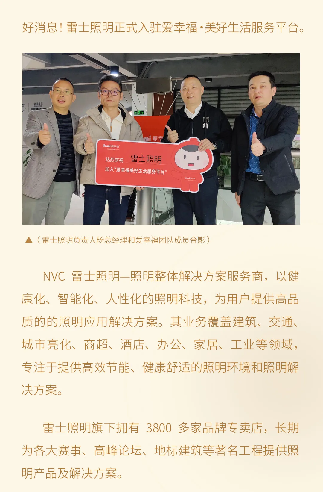 雷士照明正式入驻爱幸福`美好生活服务平台