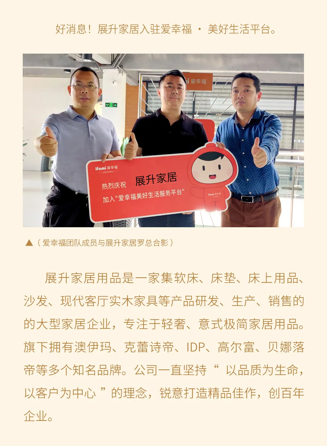 展升家居入驻爱幸福·美好生活服务平台