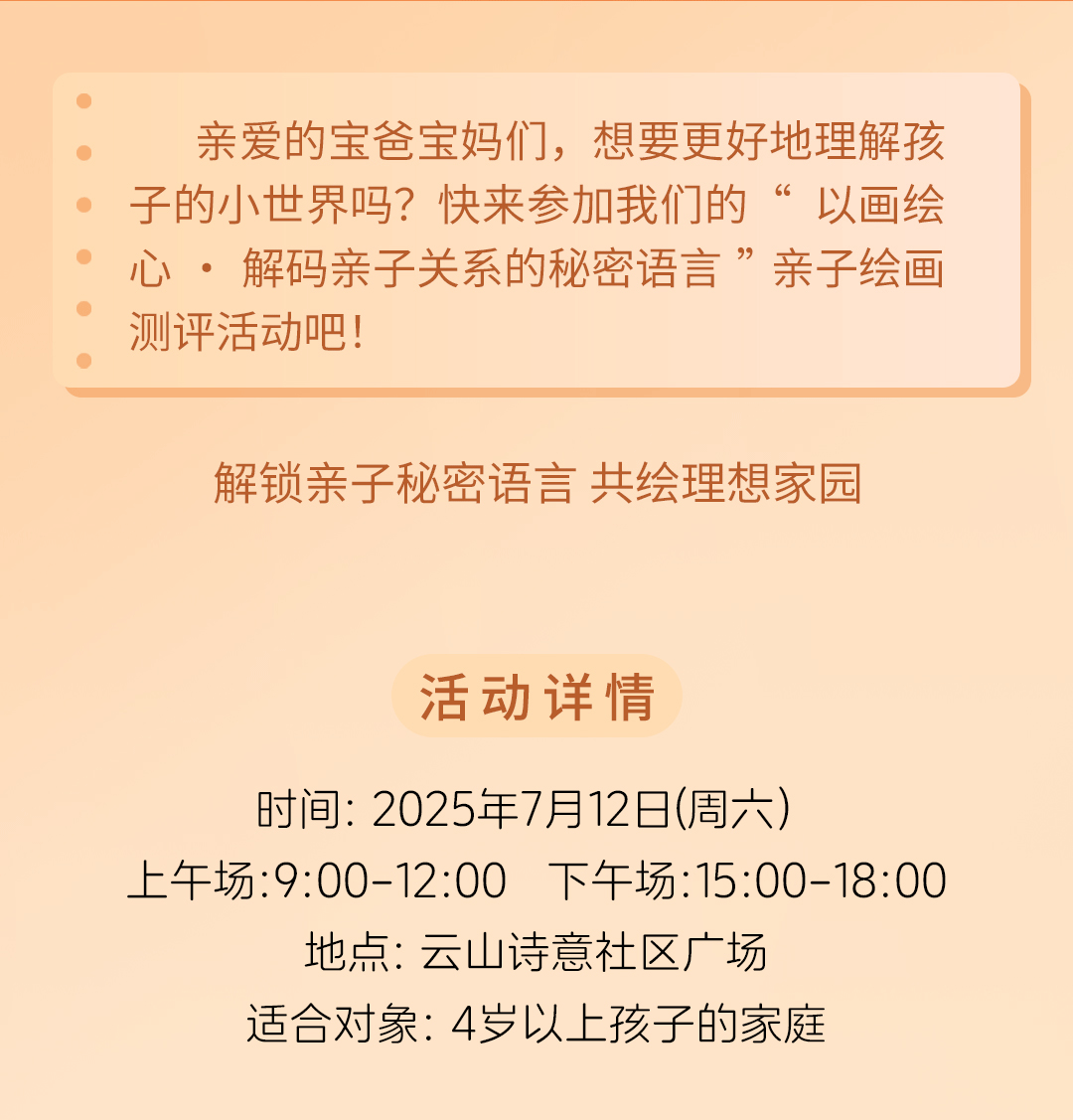 7月12日云山诗意免费的亲子绘画测评活动来了!