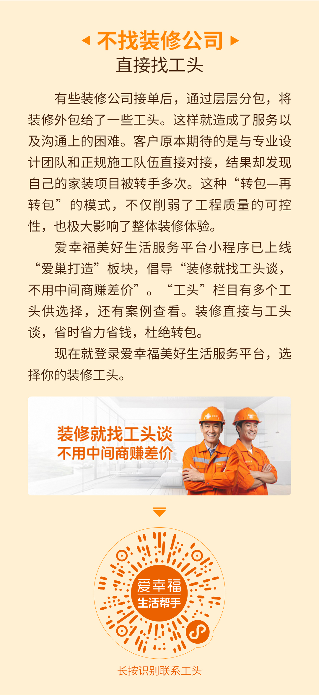 当618购物狂欢的号角吹响,家装行业正迎来一场历史性的变革!在这个全民“剁手节”的购物日,爱幸福平台以“装修直连工头”的新模式,彻底颠覆装修传统模式,为业主们开启了一扇通往“没有中间商赚差价”的底价大门。